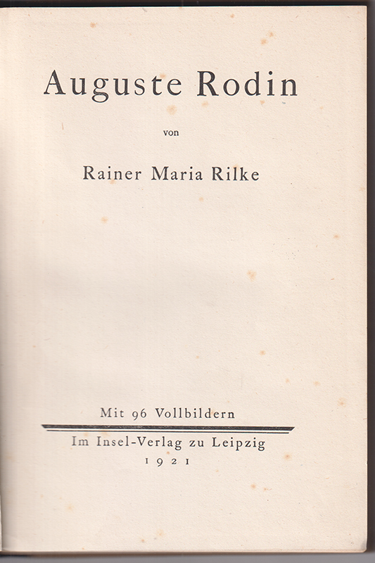 1871-25RILKE, Rainer Maria. Auguste Rodin.31.-40. Tsd. Lpz., Insel 1921 gr.-8°. 120 S., 96 Tafels. OHLn. Mit Rückengoldpräg. Ecken etw. bestoßen, vgl. Ritzer E 44; Sarkowski 1333 -