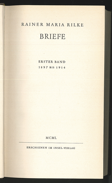 Briefe.2 Bde. (Wiesbaden), Insel-Verlag 1950. VIII (1) 566; 613 S. OLn.-Bde. m. Goldpräg.