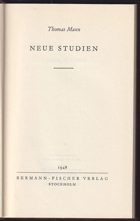 Neue Studien. Stockholm, Bermann-Fischer 1948. 185 S., 1 Bl. OLn. m. Goldpräg. EA.