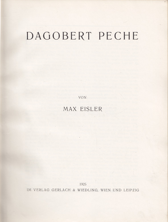3118-13PECHE - EISLER, Max. Dagobert Peche. Wien u. Lpz., Gerlach & Wiedling 1925. 4°. 43 (1) S., 110 Taf. mit zahlr. photogr. Abb. OPbd. mit Einbandill. Rü. m. schwarzem Leinen restaur. (Das Kunsthandwerk in Einzeldarstellungen, hrsg. v. Max Eisler, 1. Bd.) EA | |